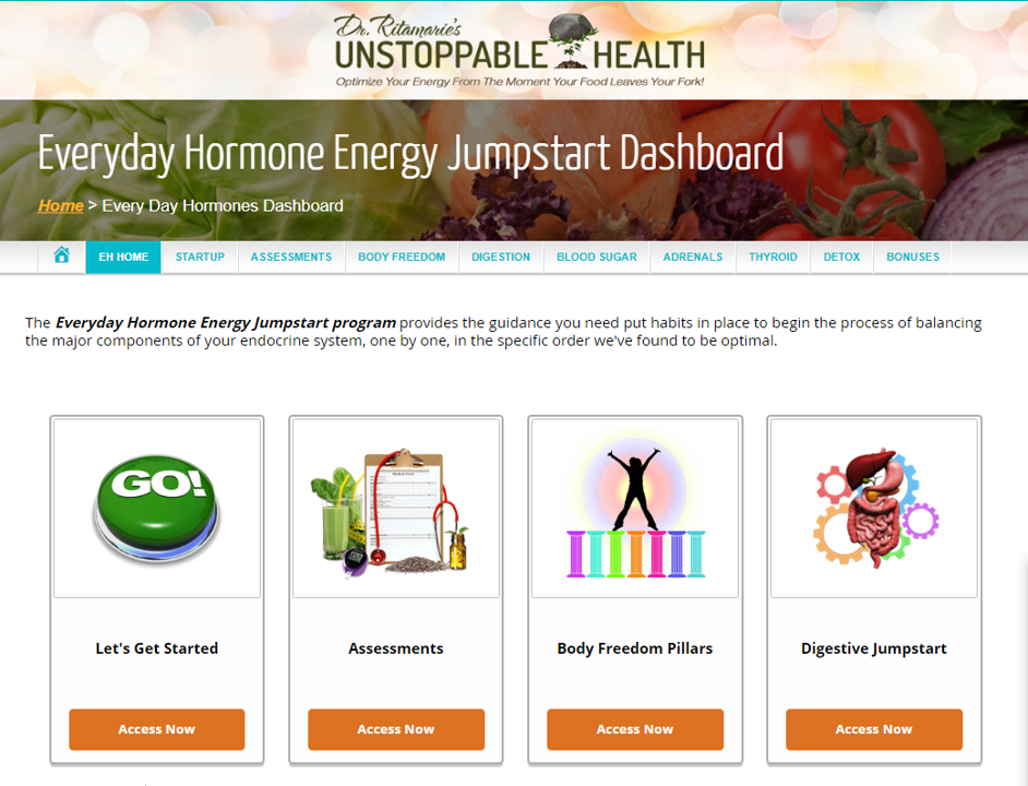 • Each of the body systems and hormones modules includes a recipe guide and food checklists, plus a variety of tools and resources for supporting and balancing that system.